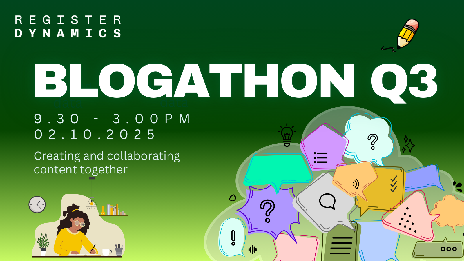To read more about our Blogathons explore our previous articles: Reflections on our first blogathon and A successful Blogathon Q2 for Register Dynamics!